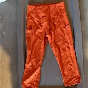 Vibrant orange leggings with a high waist. Perfect for workouts or casual wear.