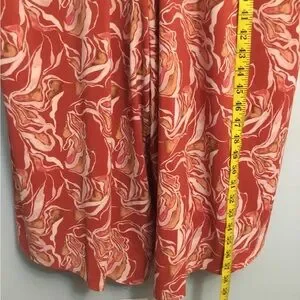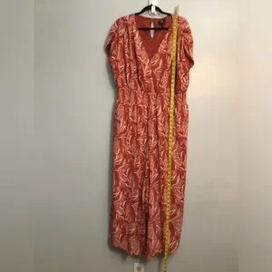 Chic coral dress with floral pattern. Lightweight and stylish. Ideal for casual outings.