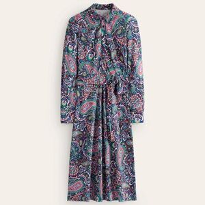 Laura Jersey Midi Shirt Dress Navy, Paisley Paradise