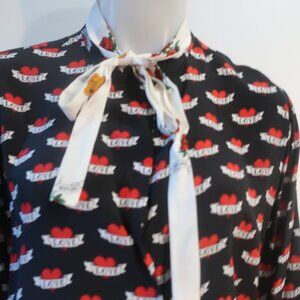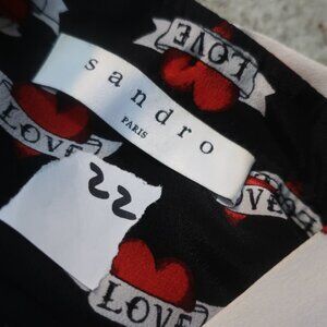 Sandro Paris Maika Multi(Item- 22) Pure Silk Tattoo Love Heart Tie Neck Blouse 2