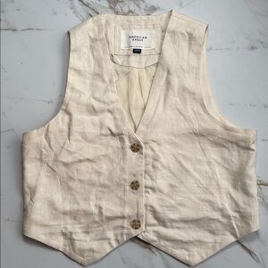 American Eagle Linen Blend Cream Vest Sz L. Very slight pilling near arm pits (see photo)