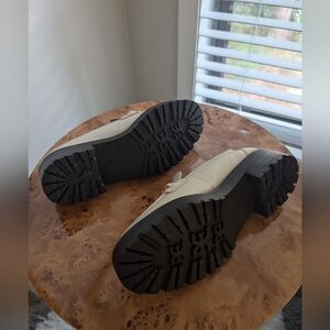 gold chain detail, cream color upper and black rubber bottom. never worn!