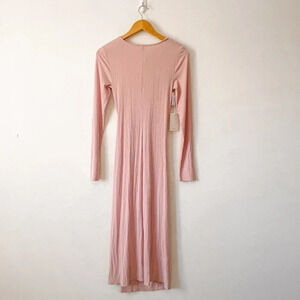 Aritzia Wilfred Amelia Long Sleeve Ribbed Jersey Dress NWT Poetic Pink Sz Small