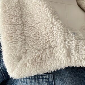 New! 5-button denim with white faux shearling accents. Pockets. No lining.