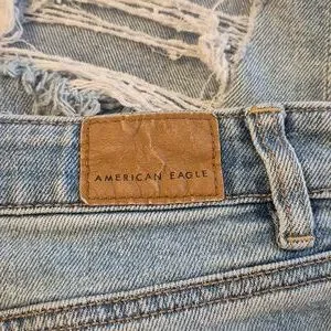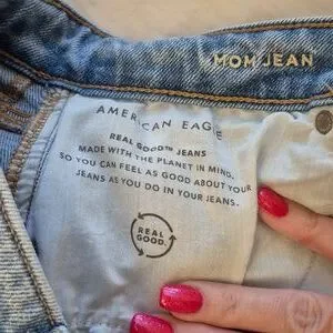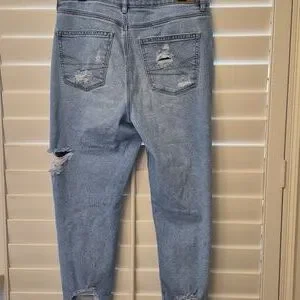 Trendy ripped stretch Mom jeans by American Eagle Outfitters. Sz 12 Short 24" inseam, 17" across waist.