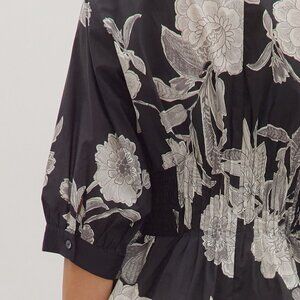 ENTRO BLACK & WHITE FLORAL TOP WITH GOLD ZIPPER