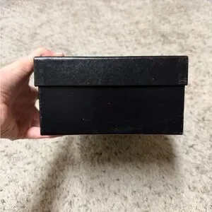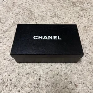 Chanel black shoe box, good condition, some scratches. Original tissue and booklet inside. Size: 11” x 6.25”