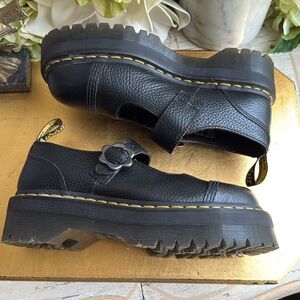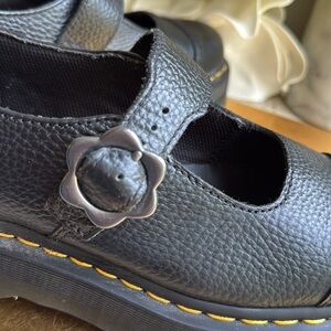 Black pebbled leather over platform signature “Air Wair” Bouncing soles.