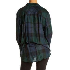 LOFT green and blue plaid shirt with button-down front.