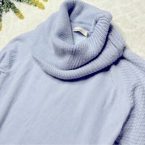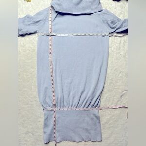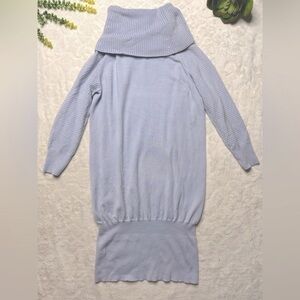 Karen Millen Wool Blend Cowl Neck 3/4 Sleeve Knit Mini Sweater Dress Light Blue
