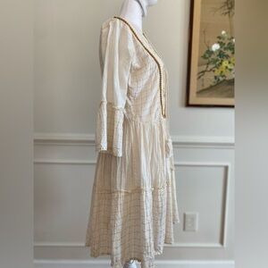 boho, bohemian, embroidered, tassel, peasant dress, bell sleeves, tiered mini, cottagecore, romantic, neutral, cream boho, ethnic inspired, festival ready, vintage vibe, effortless chic