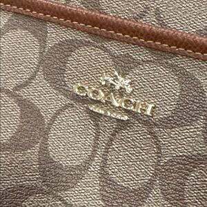 * Zip-top closure with Coach leather tag accent