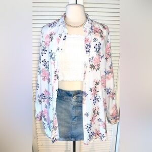 H&M White button down floral print long sleeve shirt Women’s Size 14
