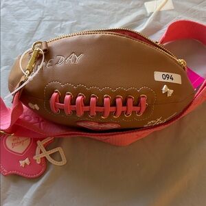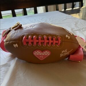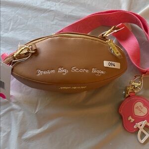 094,NWT Betsey Johnson Brown and Pink Football Crossbody Bag.