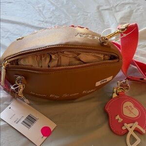 094,NWT Betsey Johnson Brown and Pink Football Crossbody Bag