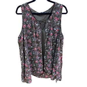Lily Morgan Womens V Neck Olive Green Floral Sleeveless Blouse Top Size 2X