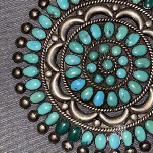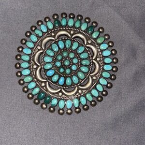 Native American Zuni Lee Mary Weebothee 3" Turquoise Sterling Silver Pin Brooch