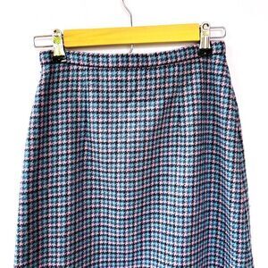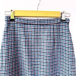 Vintage Aston Made in Scotland 100% Pure Wool Pink Blue Midi Skirt Small