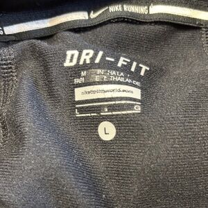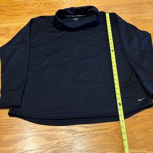 Sleek women’s black Nike pullover. Paired with geometric design leggings. Ideal for active or casual wear.