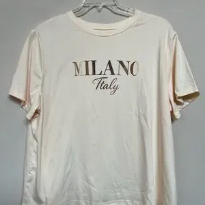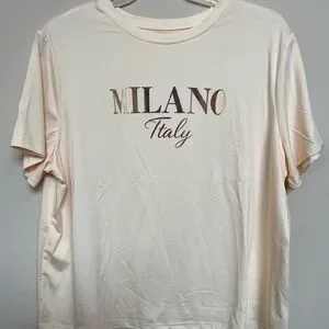 Soft cream tee with Milano Italy print. Casual and stylish. Length: 26” E3