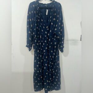 Madewell Plus Challis Midi Dress in Deep Indigo Floral
