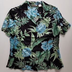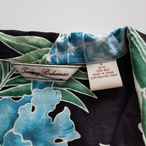 Tommy Bahama Silk Black Green Blue Hawaiian Tropical Short Sleeve ButtonUp Shirt