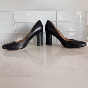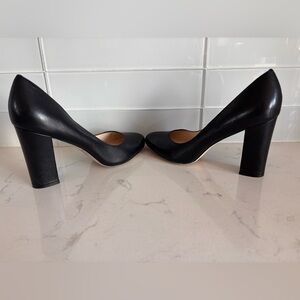 Elevate your style with these classic black leather pumps. Perfect for any occasion, these shoes offer both elegance and comfort. Excellent condition.