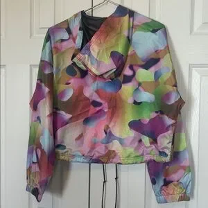 Brand new without tags Noli windbreaker in size small (4-6). Print prism camo, a fun and whimsical multi color camouflage print. Very lightweight jacket, perfect for spring. Drawstring at bottom hem to customize fit. Good. No pockets. Inner mesh lining. Perfect for layering over your favorite activewear en route to the gym or on the go! No longer available online.