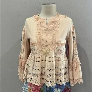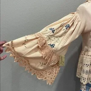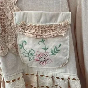 Upcycled thrifted top made from vintage family linens. All natural fibers. All pre-loved natural fabrics. Measures 39 at bust.