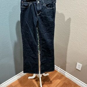 Stylish demi curve boot-leg jeans by Levi's. Deep indigo color. Perfect for versatile wear. The only wear is on both the cuffs please see pictures