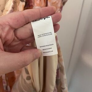 Gorgeous floral dress in a light pink and orange pattern. Sweetheart neck. Zip closure. Puff sleeves. Lined. Tiered.