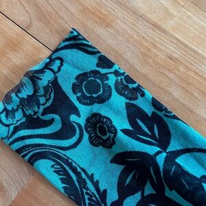 Elegant long sleeve top with floral pattern. Features a teal green and black color scheme. Perfect for casual or formal wear. Shear top. Great alone or layered.