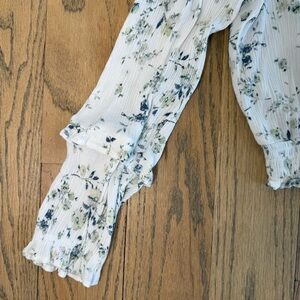 Wallflower Floral White Smocked Cropped Women's Long Sleeve Blouse Top Medium