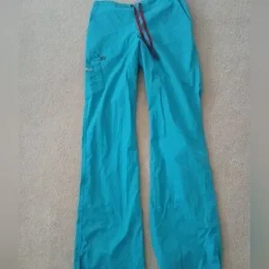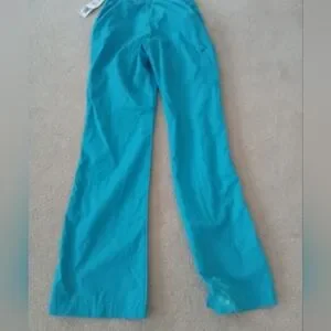 These are NEW women's Teal Flare Scrub Pants in size TXS from the Scrub Zone Red brand .Made of a polyester cotton blend, they are suitable for medical industry professionals. The pants feature a solid pattern , drawstring elastic waist, Two front pockets and are designed for women.