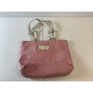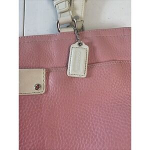 Vtg Coach Hamilton Pebbled Leather Book Tote Shoulder Handbag Purse Pink Cream