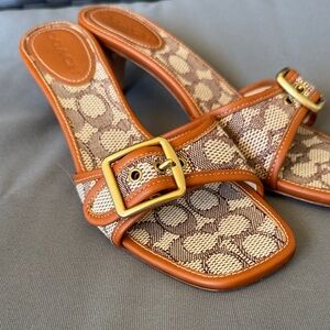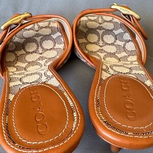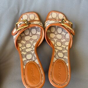 Chic Coach sandals with signature pattern. Stylish buckle accent. Perfect for any occasion in perfect condition used once