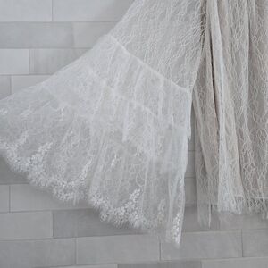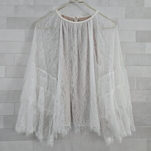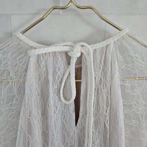 Alice + Olivia Delia Ruffled Lace Tunic Top Blouse White Sheer Mesh Bell Sleeve