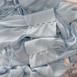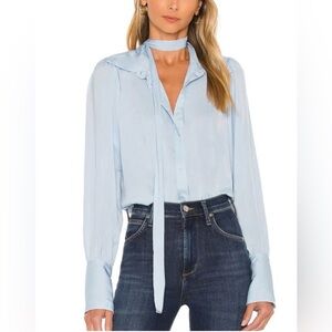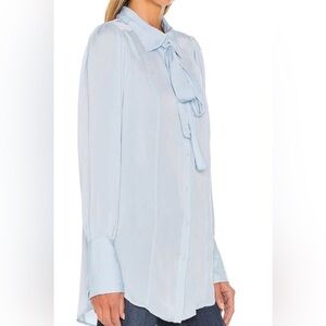 A true staple in any closet, this stunning button-down is featured in a relaxed silhouette with tie detail at the collar and covered button closures at the sleeves for the perfect finishing touch.