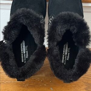 Cozy and stylish winter boots. Black suede with gray knit accents. Warm fur lining. Durable sole for traction.