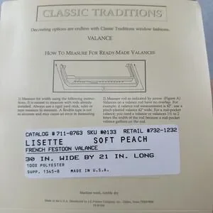 VTG Lizette Ascot Valance Shear Soft Peach Ruffle 21" X 30" Length Pocket Rod