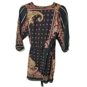 Zara Black Paisley Half-Wrap Festival Dress w/ Fringe Small