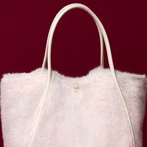 NWT Victoria's Secret Ivory Cream Luxe Fuzzy Soft Faux Fur Tote Travel Bag 2025