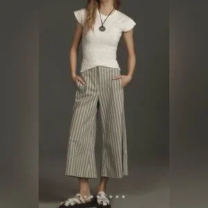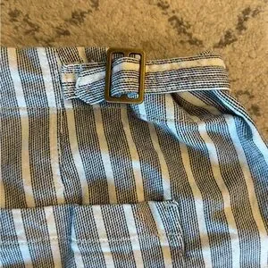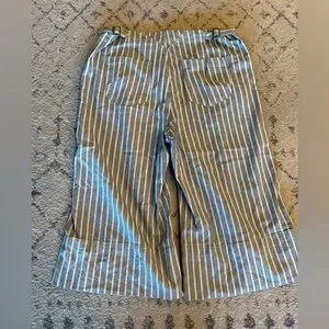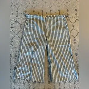 These pinstriped cropped pants are so cute. They have little buckles that can slightly adjust the waist. Excellent condition