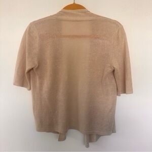 Stylish light tan linen cardigan by Eileen Fisher. Ideal for layering. Soft and comfortable fabric.