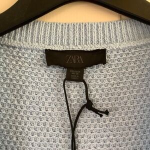 ZARA Knit Textured Button Up Vest Light Blue SZ M