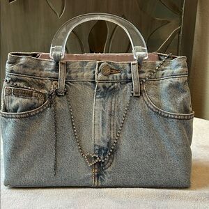 Calvin Klein Jeans Light Blue Denim with Chain Accent hand bag.