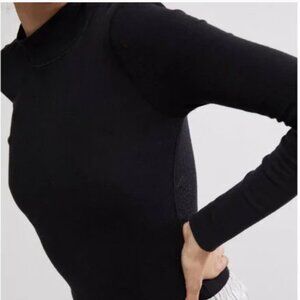 Essential ribbed long sleeve top featuring a mock neck and form-fitting look.