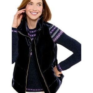 Talbots Effortless Velvet Down Puffer Vest Women's L Dark Navy Blue Pockets