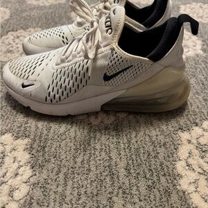 Nike Air Max 270 with cream upper and black details. Sleek and modern design.