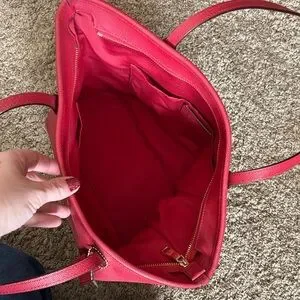 Stylish Coach tote in vibrant red. Perfect for daily use. Features durable leather and elegant design.